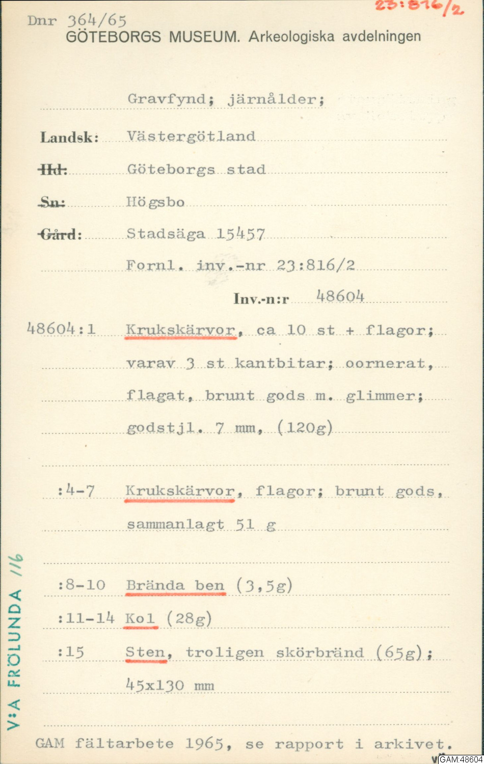 GAM:48604 :: utgrävningar, utgrävning, slutundersökning [fältark]