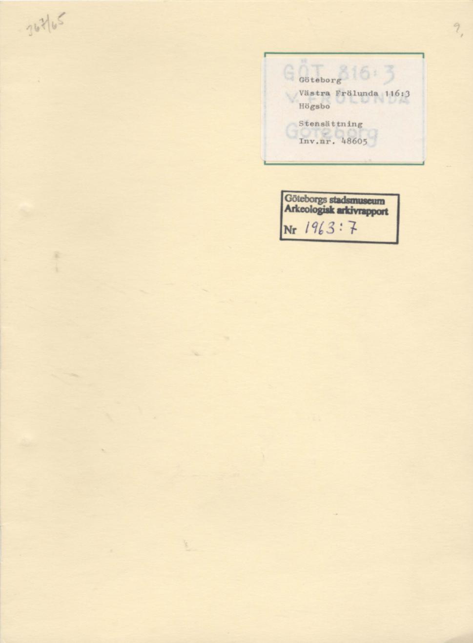 Arkeologisk rapport 1963:7; Rapport över undersökning av fornlämningen Göt 816:3;