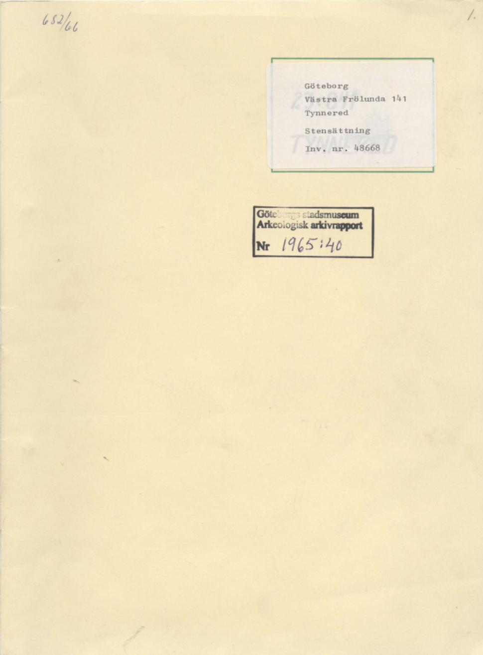 Arkeologisk rapport 1965:40 :: rapport, arkeologisk rapport, arkeologisk arkivrapport