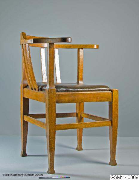 använd av chefen och grundaren av Göteborgs Arkeologiska museum Georg F L Sarauw (1862-1928) som skrivbordsstol i arbetsrummet på museet, Norra Hamngatan 12, Göteborg.