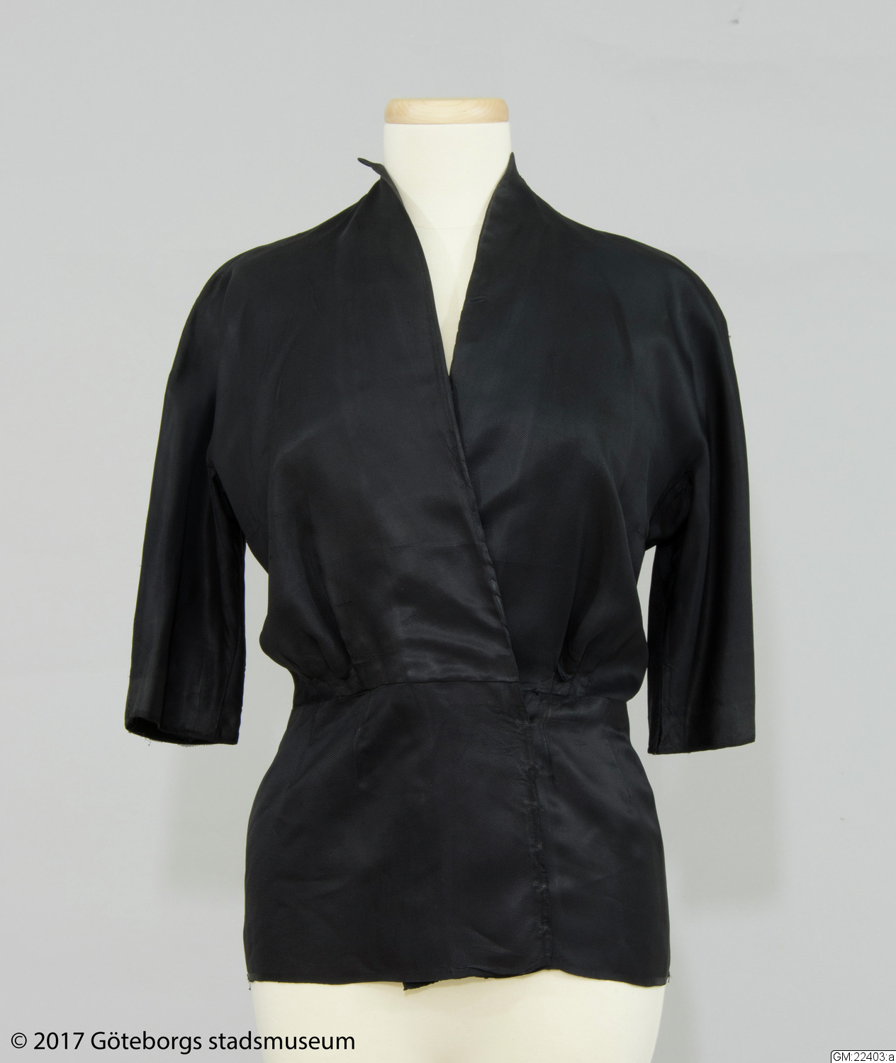 Liv med halvlång ärm, knäppt framtill omlott, med hyskor. Ofodrat. Försedd med originaletikett från modehuset Christian Dior PARIS, fastsydd på högersida.