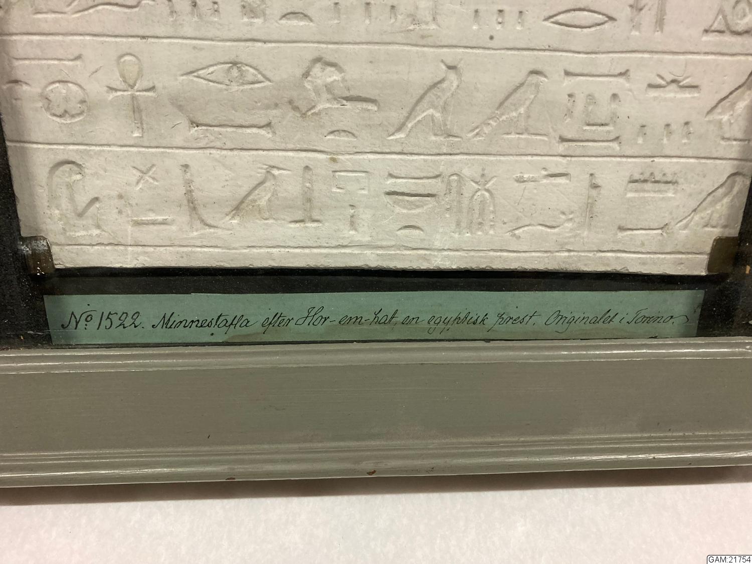 Minnestavla efter Hor-em-hat, en egyptisk präst. Originalet i Torino. No1522; I katalogen är skrivet med blyerts metlltid