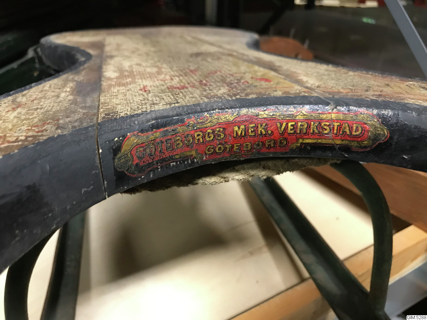 En barnkälke som brukades kalla "Böna" p g av formen.Insamlad 1963 av Åke Åberg f d museichef på GIM.