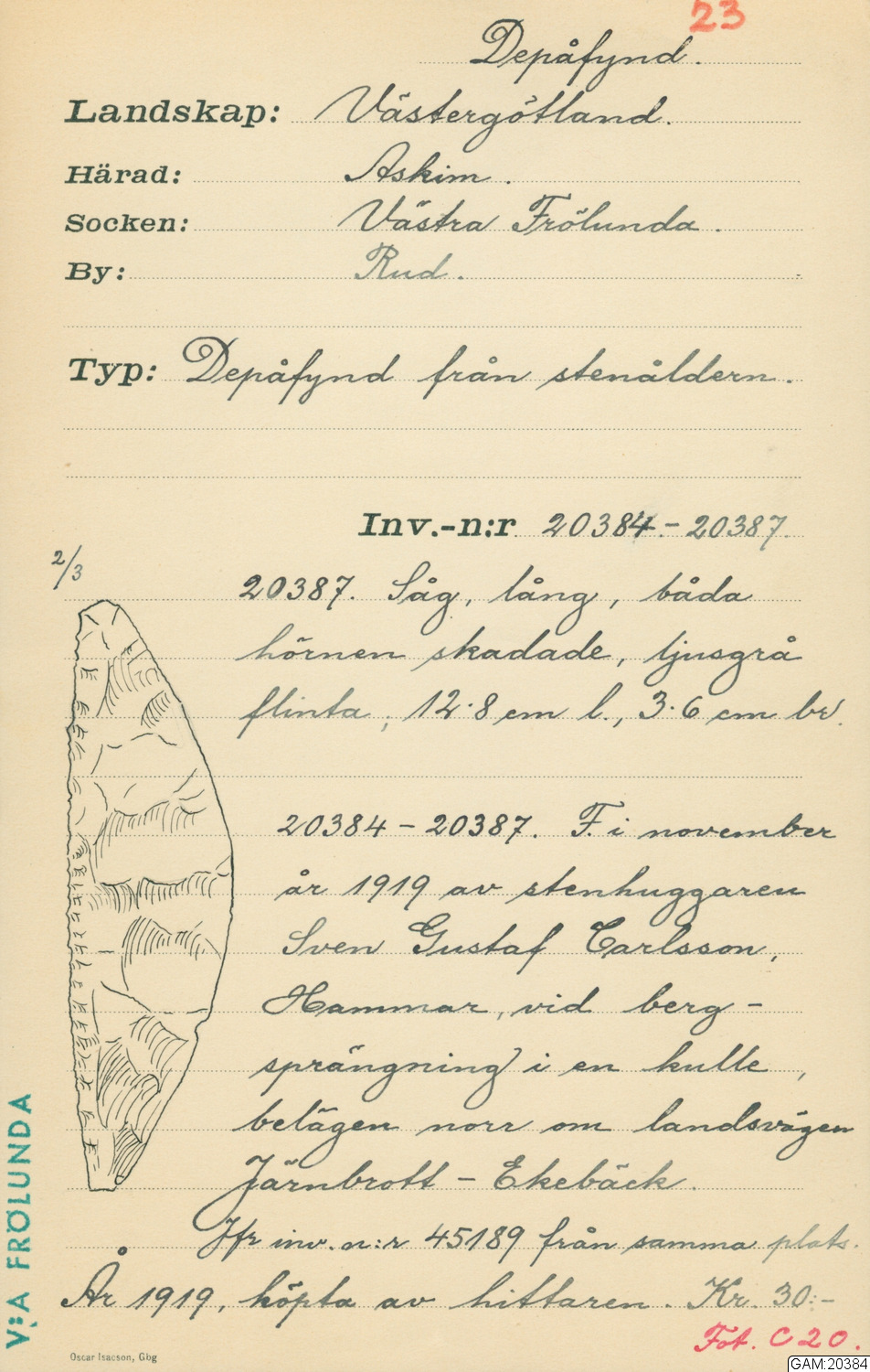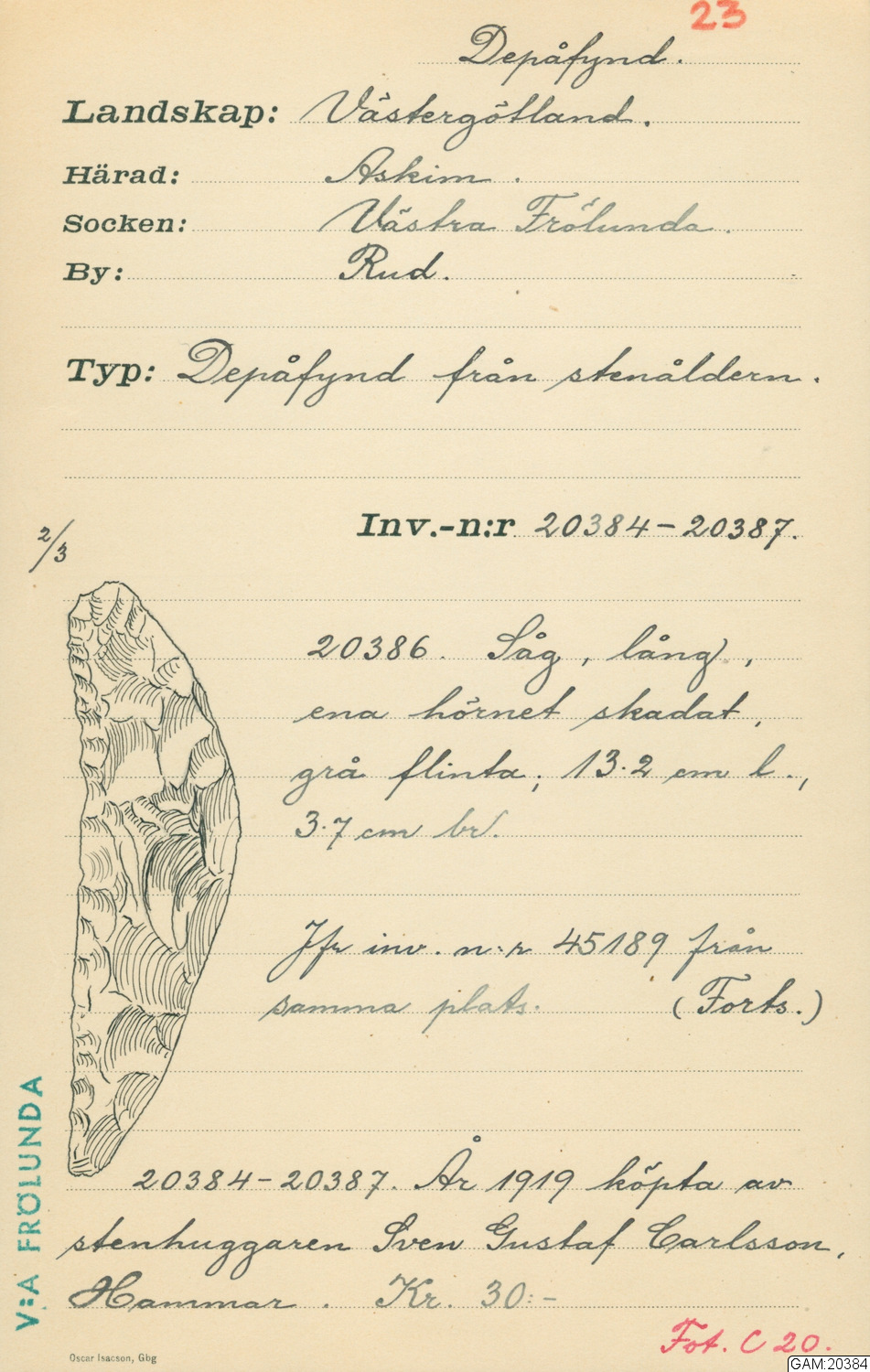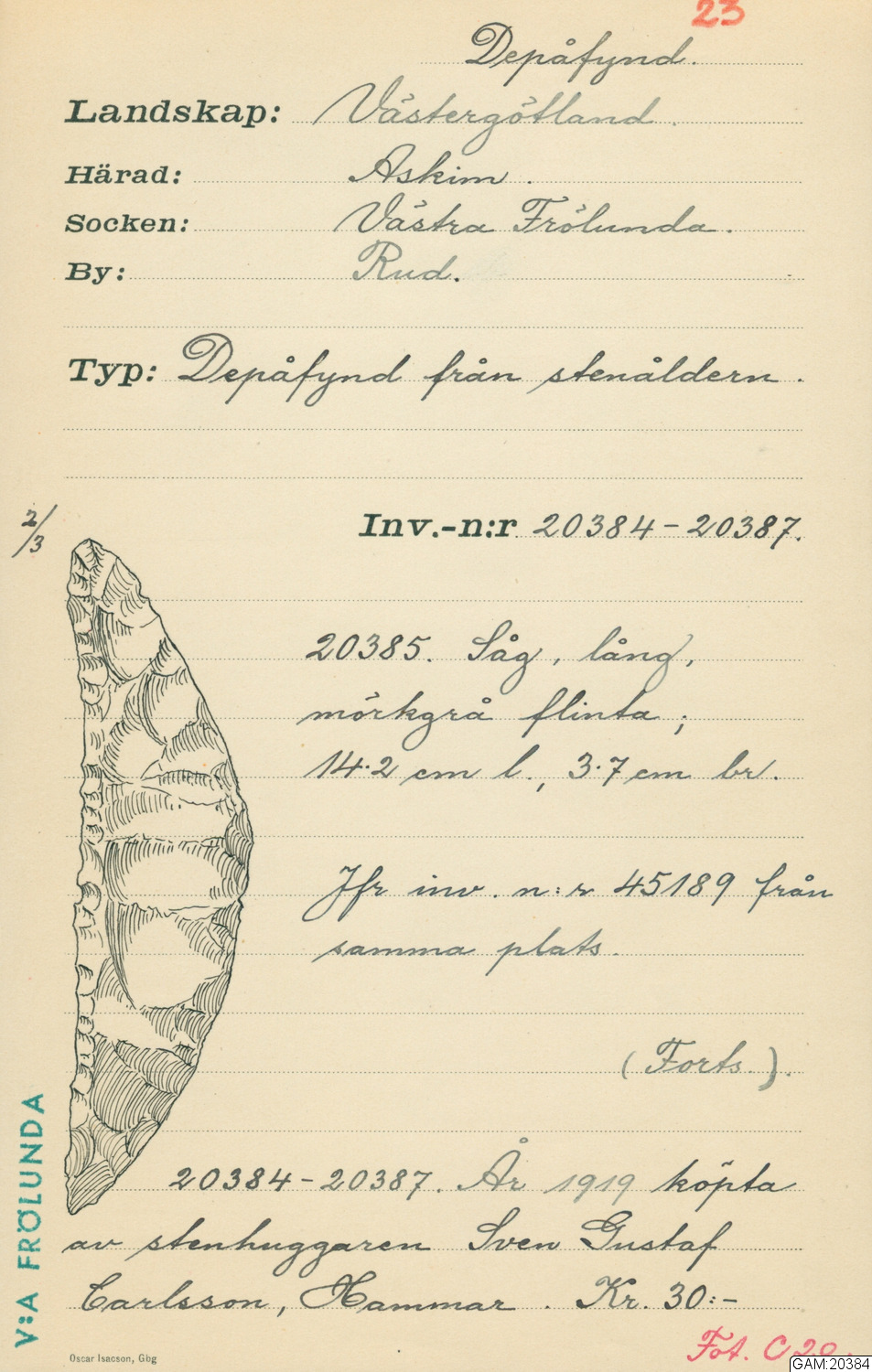 Depåfynd funnet i november 1919 av stenhuggaren Sven Gustav Carlsson Hammar vid bergsprängning i en kulle.