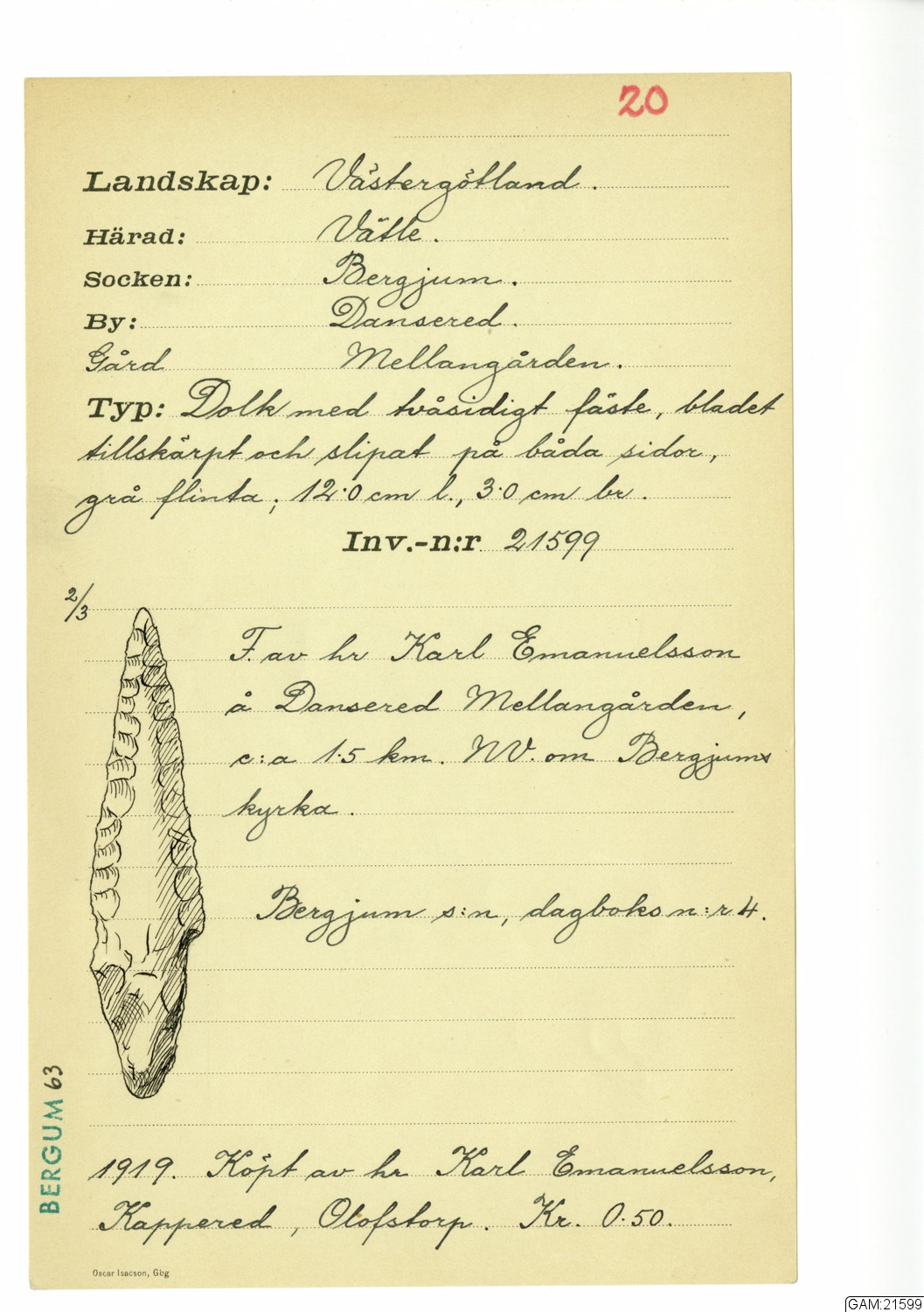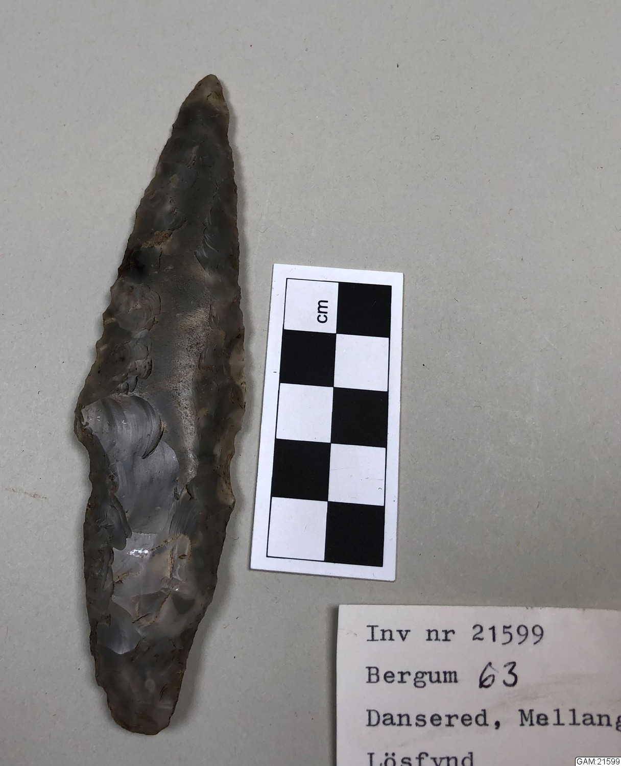 Funnet i Dansered Mellangården ca 1,5 km MV om Bergum kyrka