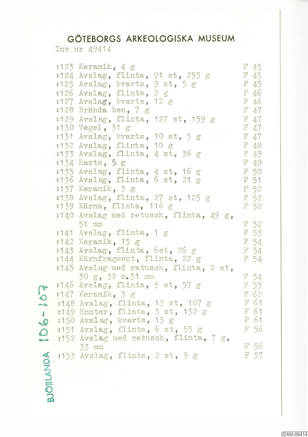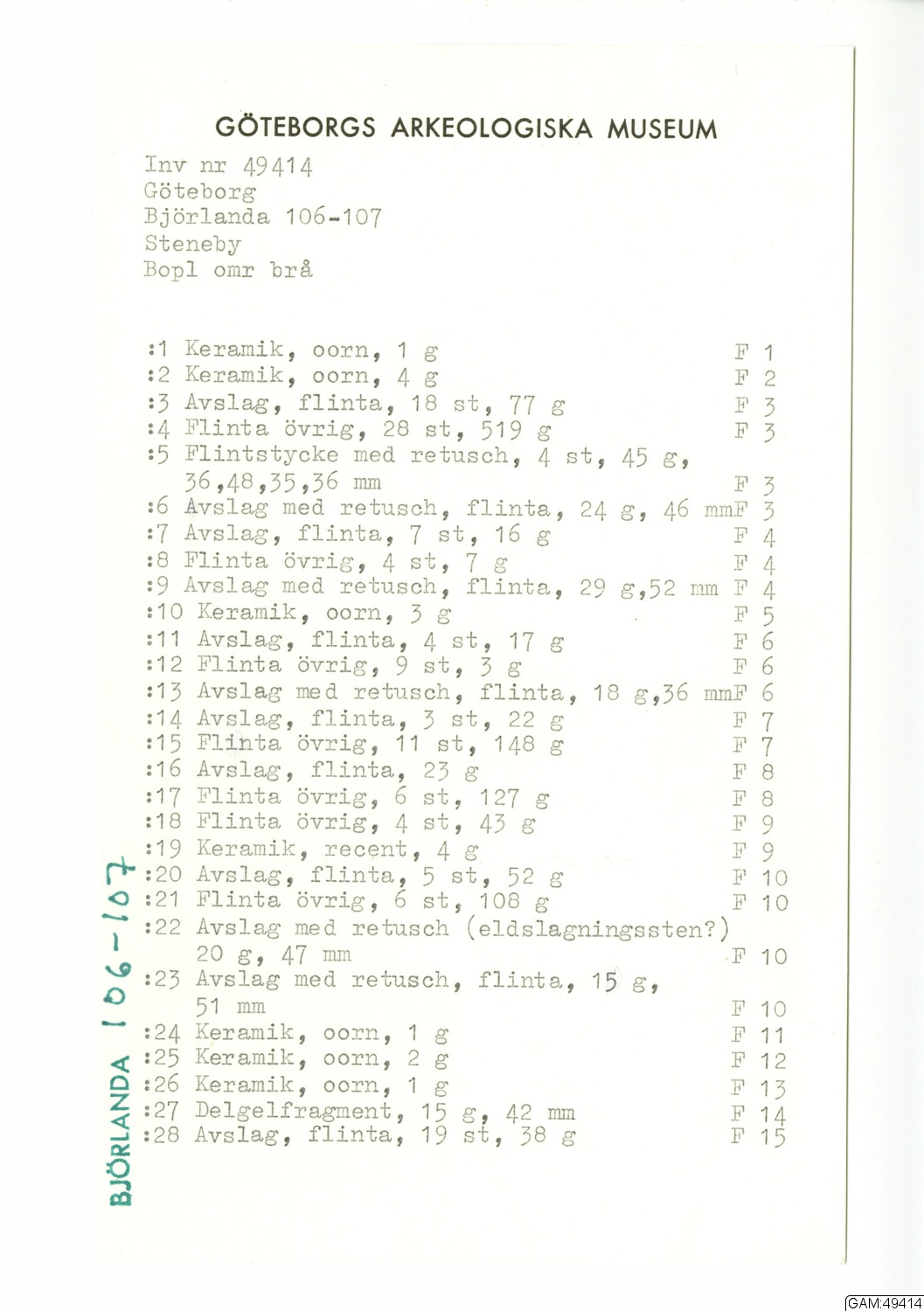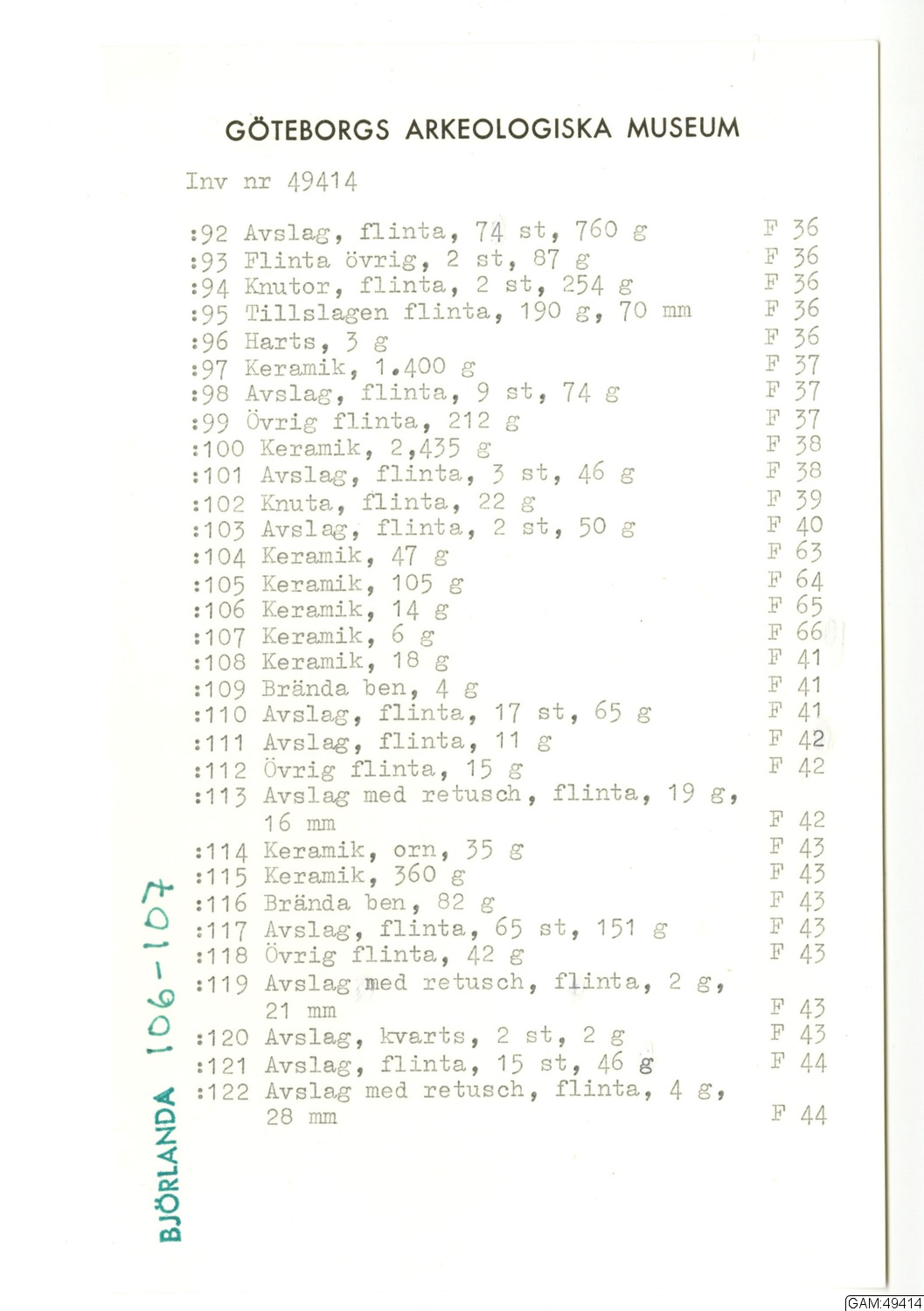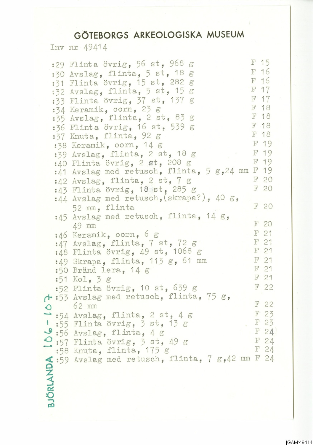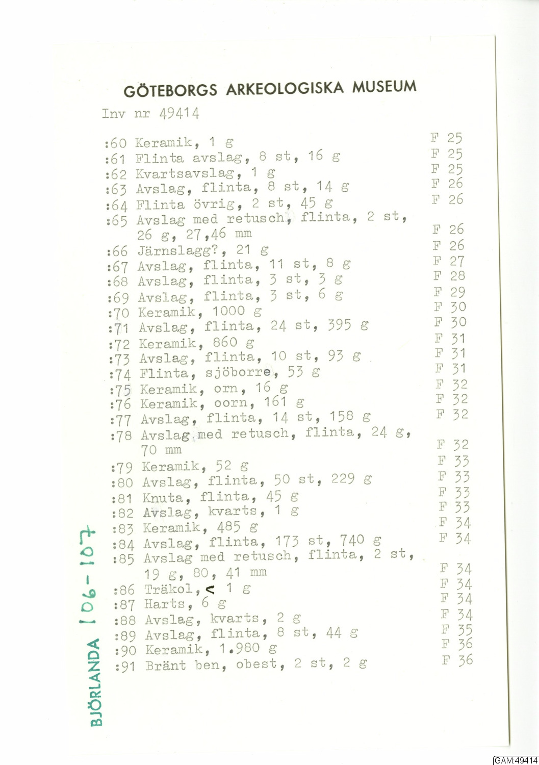 GAM:49414 :: utgrävningar, utgrävning, förundersökning [fältark], slutundersökning [fältark]