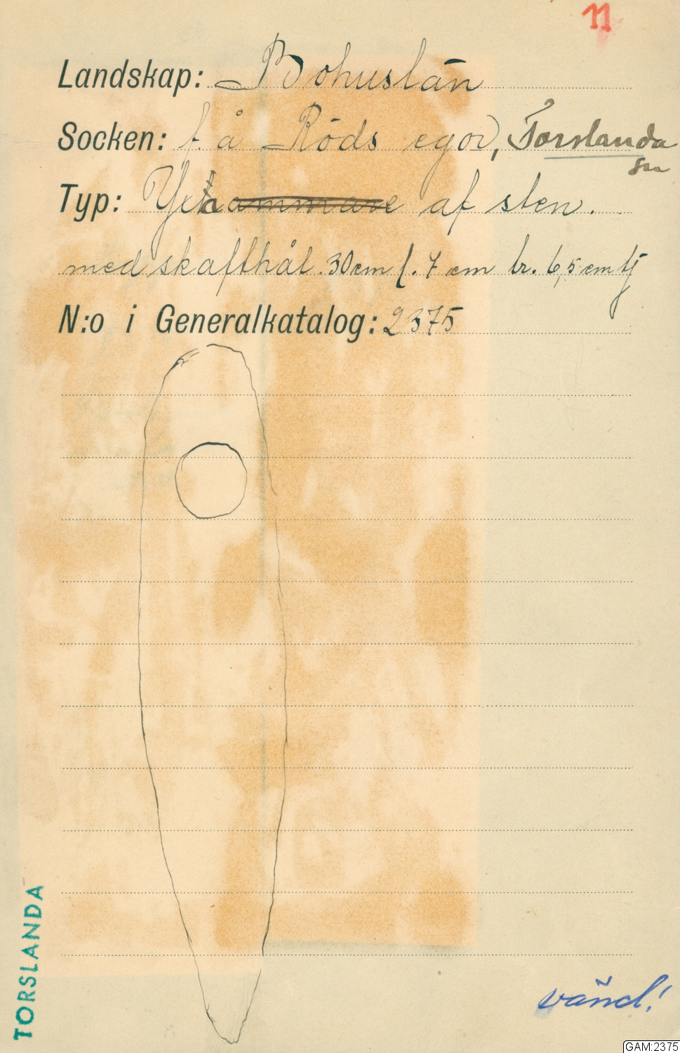 GAM:2375 :: skafthålsyxa, bergart