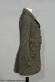 Rock av svart-vitt pepitarutigt ylle. Avskuren i midjan. Lång isydd ärm med slits knäppes med två pärlemorknappar. Krage och slag har rundade snibbar. Knäppes med sex pärlemorknappar. (Den näst översta knappen flyttad från ryggen på G.M. för utställning) Nedtill rundade hörn. På ena sidan 2 fickor med ficklock, på den andra tre. Sprund i ryggen. På varje sida därom ett veck.