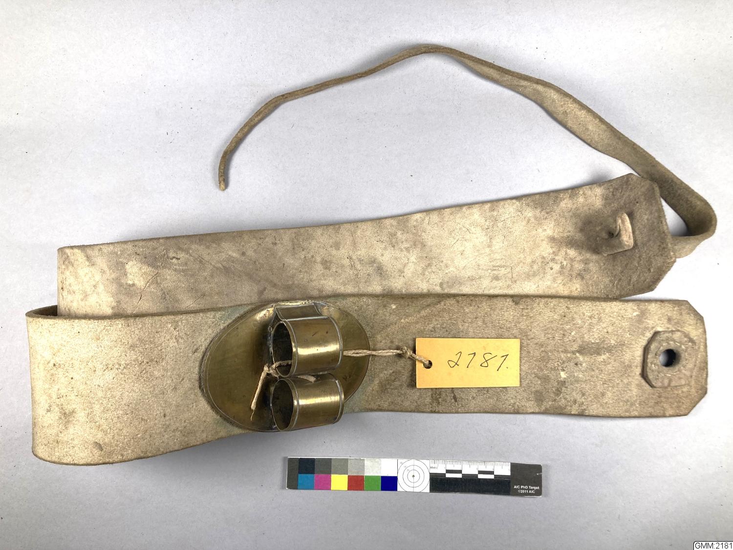 trumslagargehäng av vitt läder.