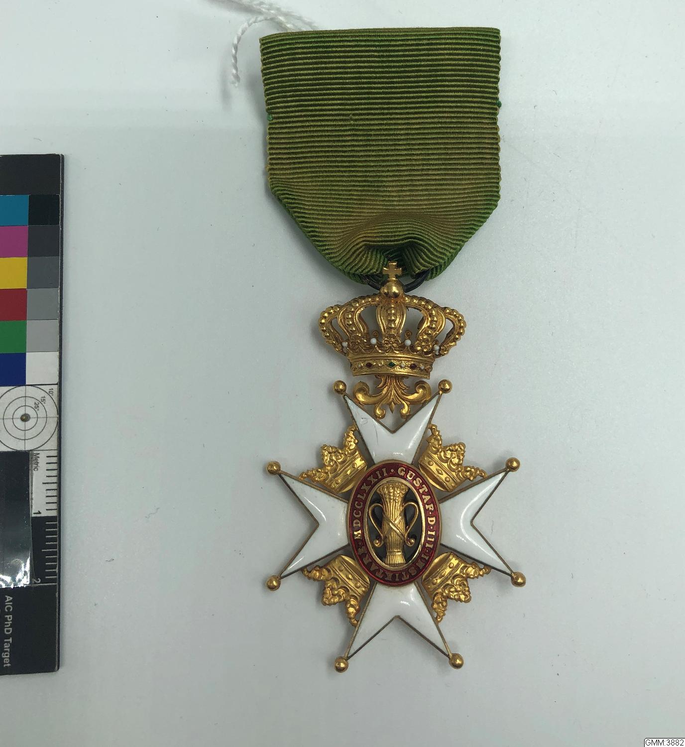 - Kungl. Vasaordens riddartecken, 1 klass. Inköpt 1945. Monterat i rakt band av Hov- och Ordensjuvelerare C. F. Carlman som även tillverkat tecknet, 18 k guld och emalj. Inköpt för utställningsändamål i de militärhistoriska samlingarna på skansen Kronan, Göteborg./ctn.