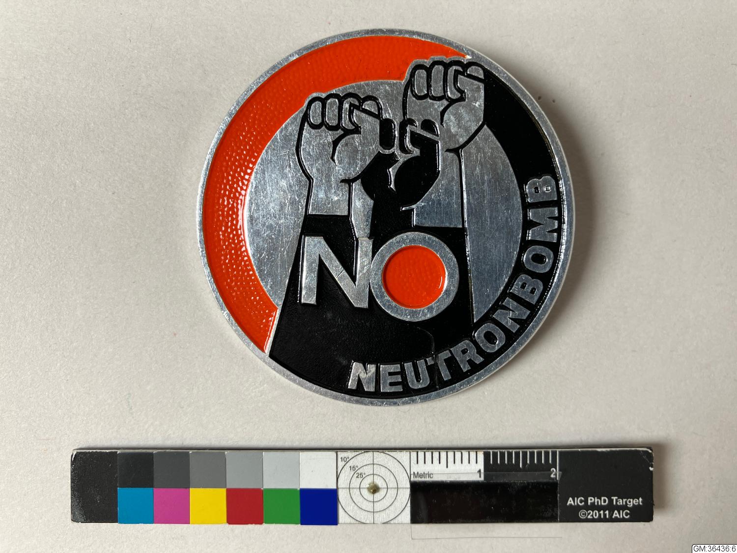 - rockmärke gjutet i vitmetall, vissa delar målade i svart och rött