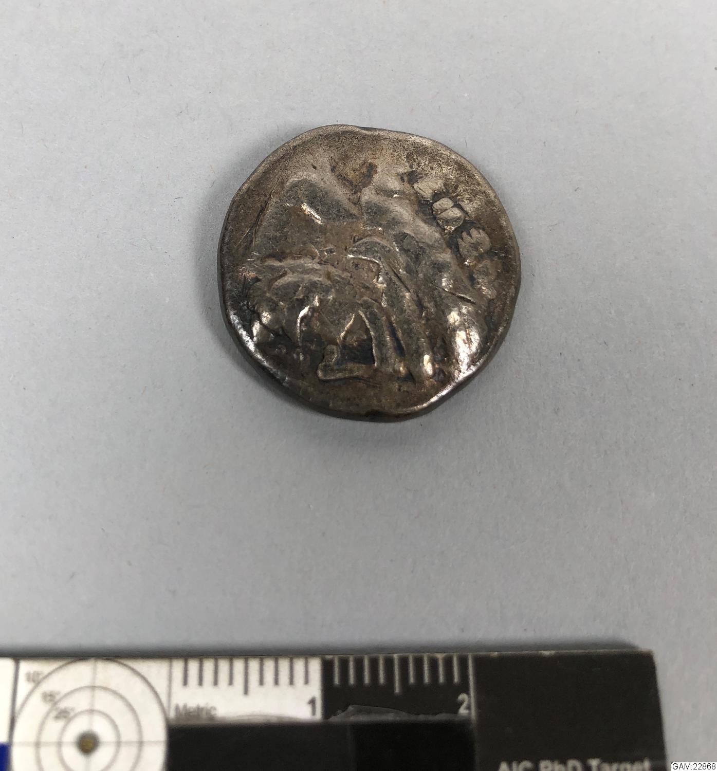 "Mynt av silver. Barbarisk prägel efterhärm. Filips av Macedonien mynt