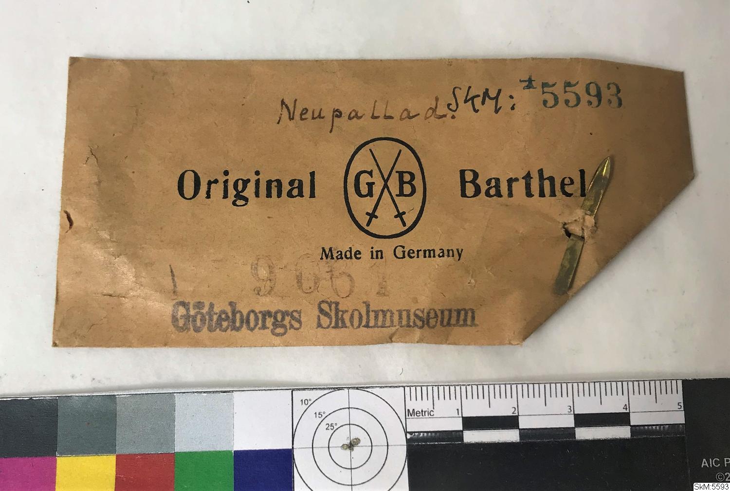 Användare av databasen varnas för att vissa poster kan innehålla bilder eller språk och termer som skildrar människor på ett sätt som kan uppfattas som stötande. En del objekt i samlingen kan också upplevas som obehagliga eller stötande.Vi är medvetna om att tillgängliggörandet är problematiskt. Vi har valt att inkludera denna historiska information eftersom den är en del av samlingarnas historia.