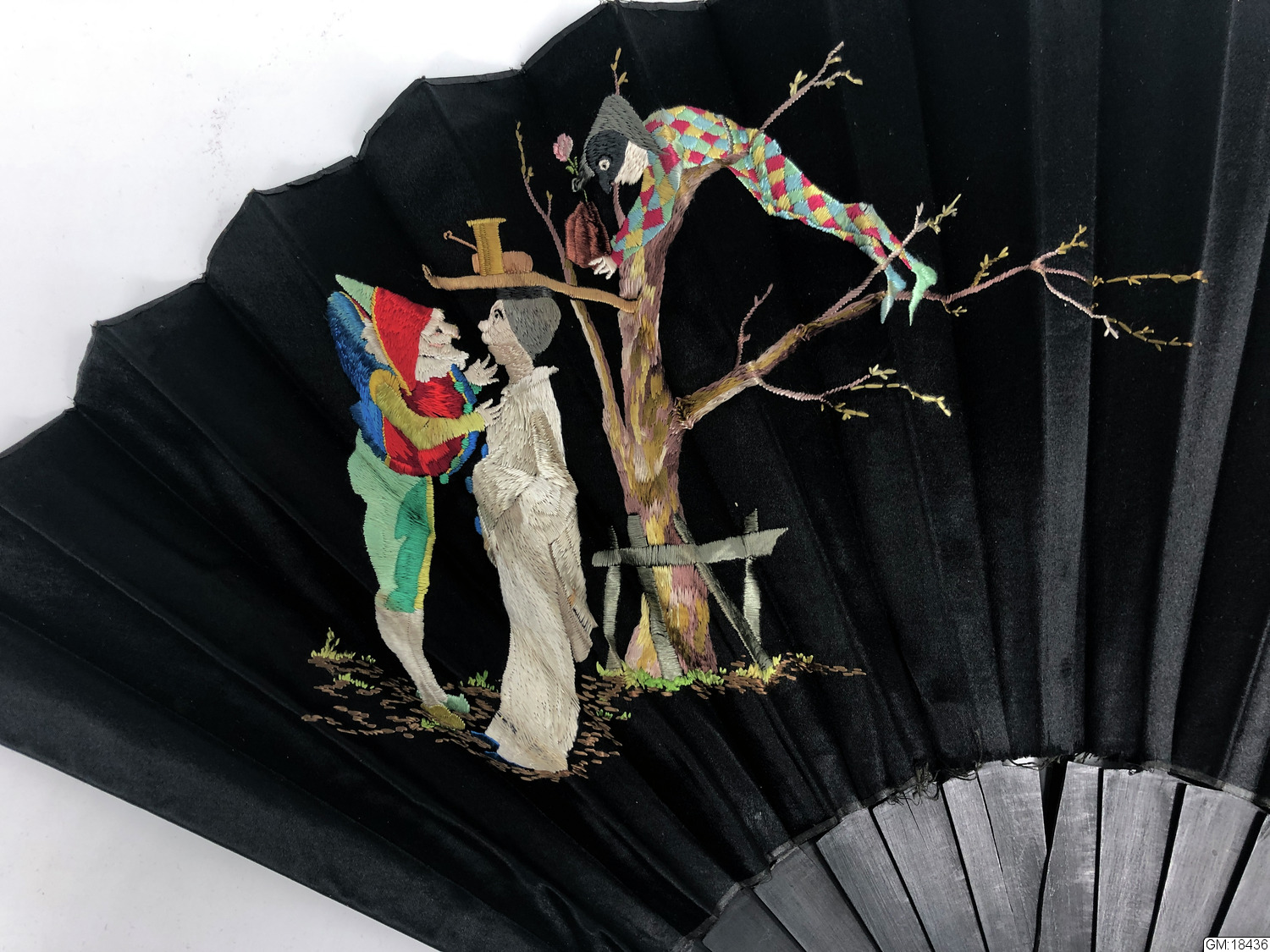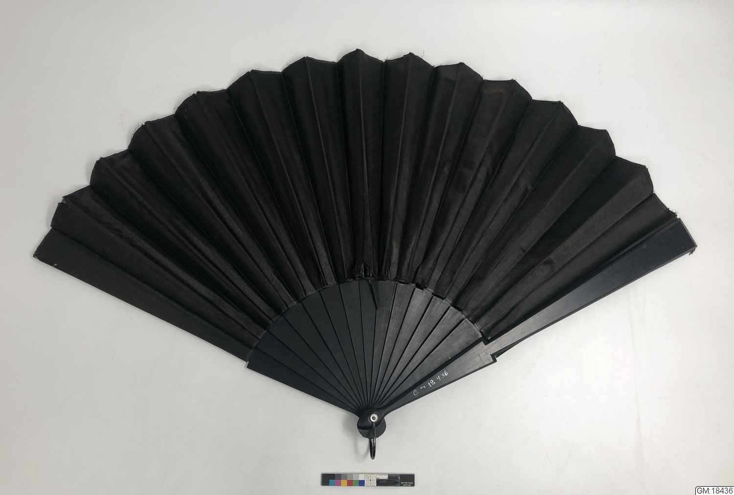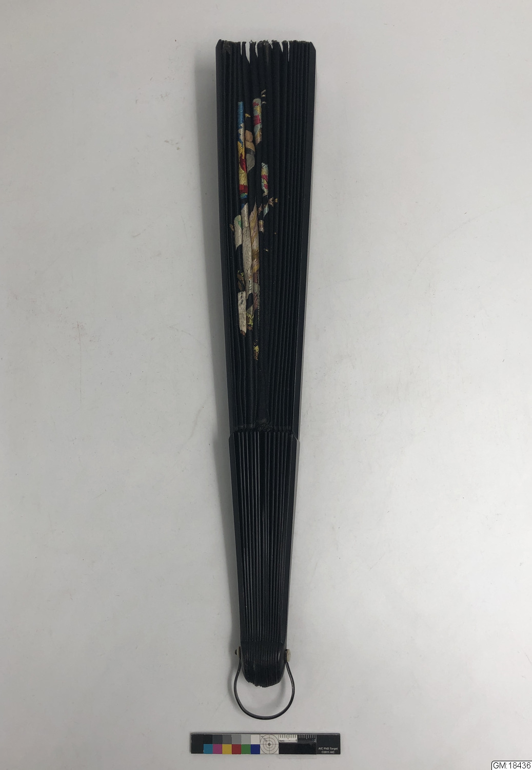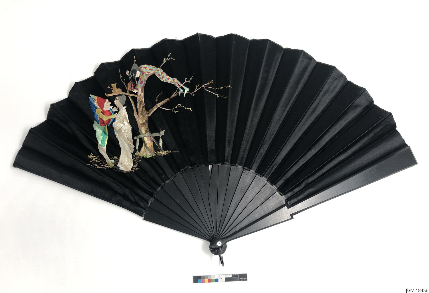 - Solfjäder med spröt av trä, ebenholz, och skärm av broderat siden.