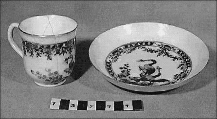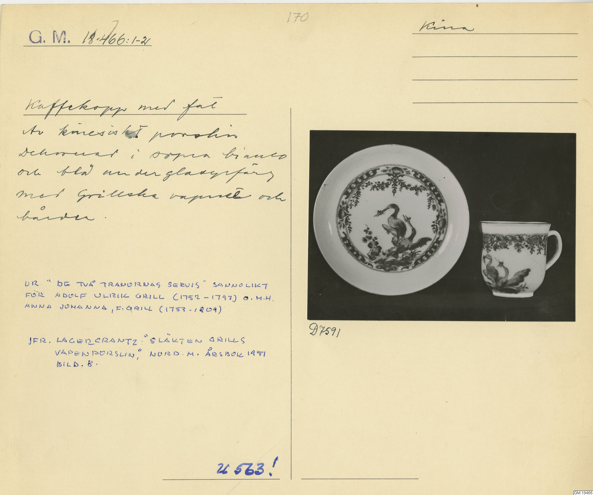 GM katalogkort 170. 18E. Porslin Ostindiskt 1. Thé mm 1. Kannor, koppar, fat