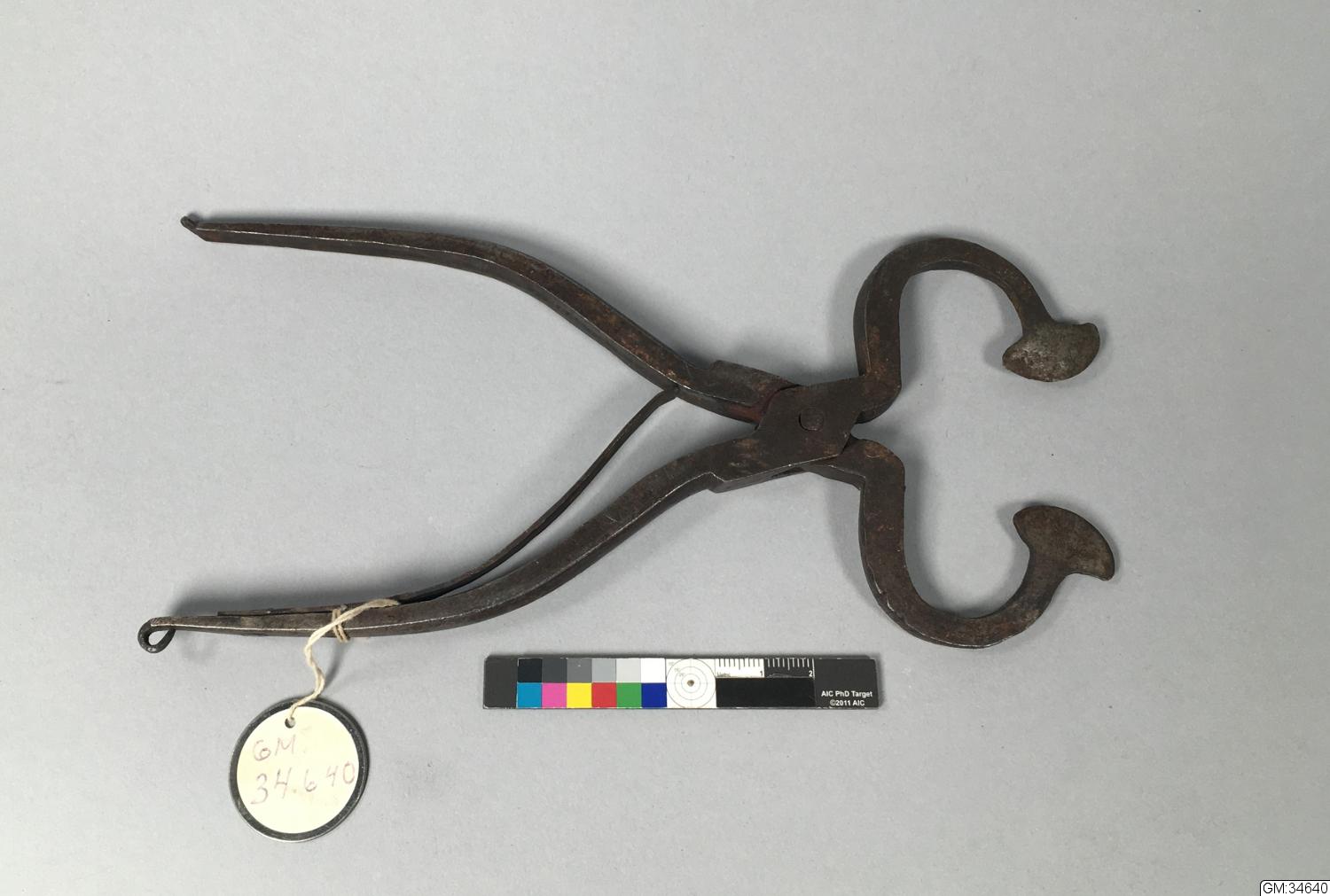 Sax för toppsocker med svängda skänklar och fjäderanordning.