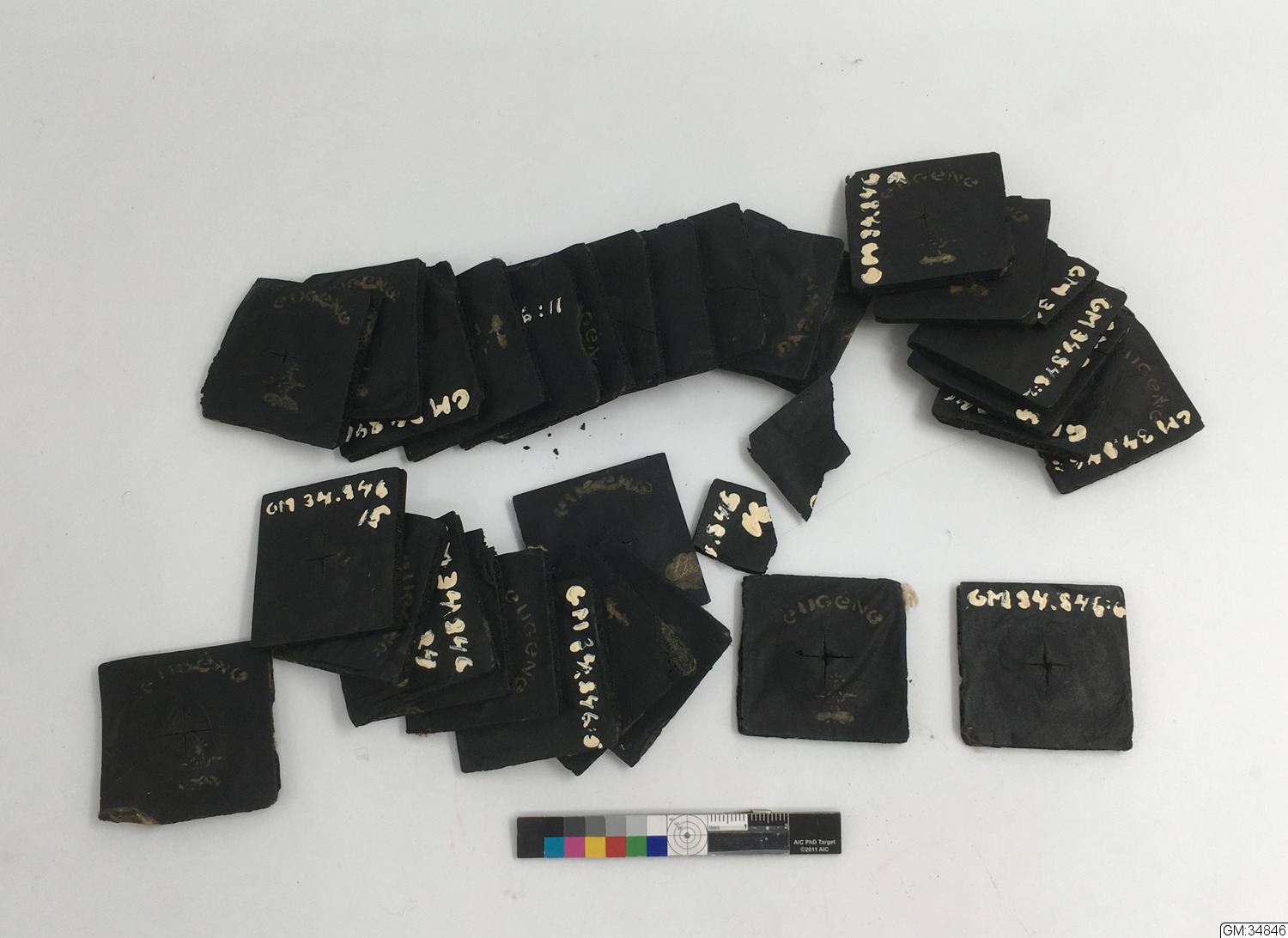 :1-35) 35 st svarta kvadratiska hårda gummiplattor. Märkta Eugénie
