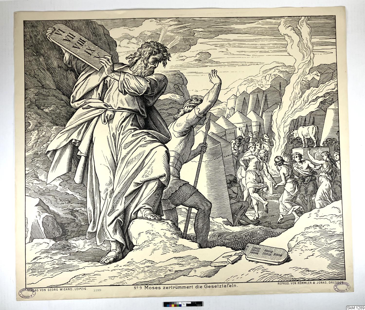 Moses zerstämmest die Gesetztafeln; Biblischen Geschichte
