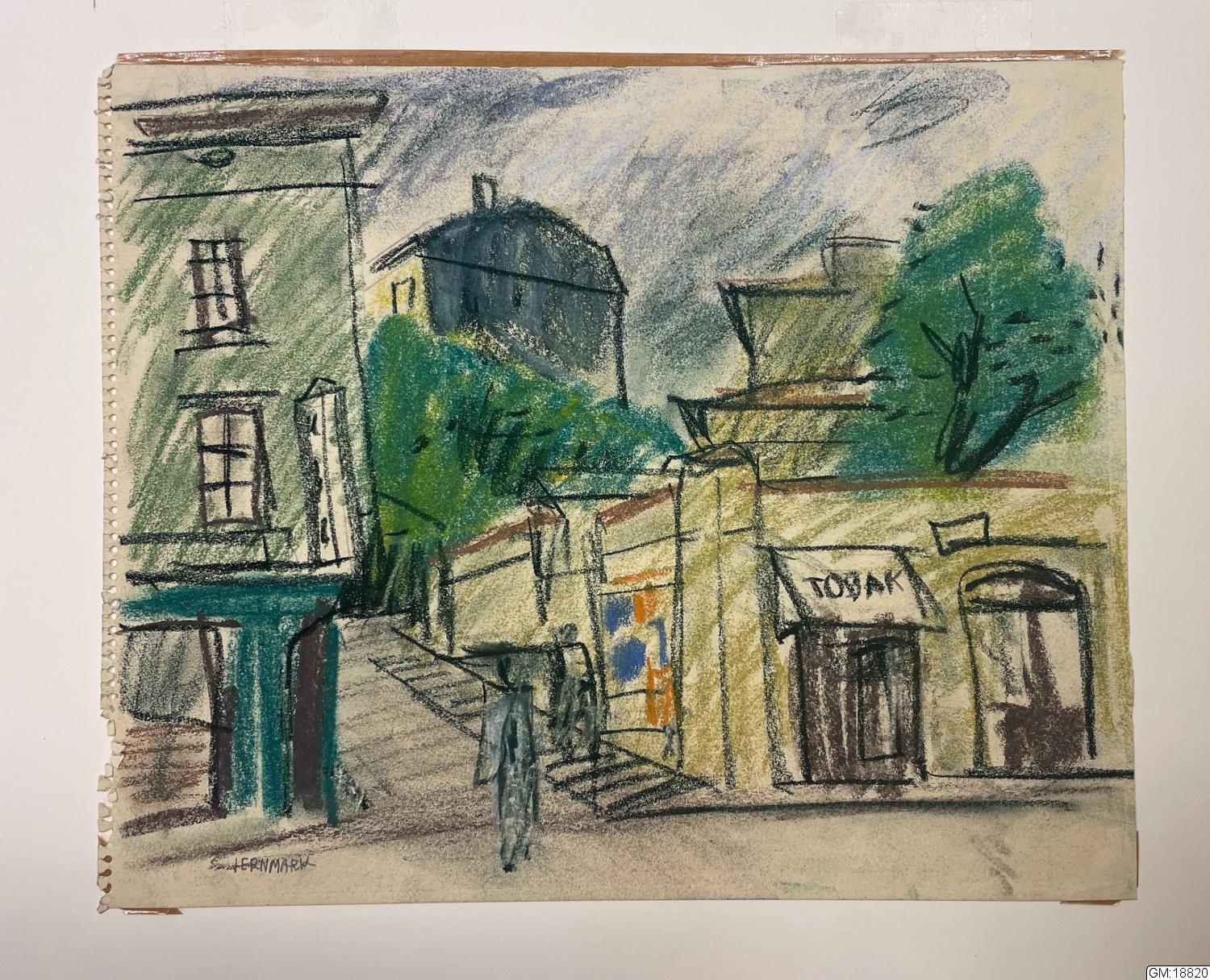Bilden visas ej av upphovsrättsliga skäl; Vid Fånglidens mynning i Rosenlundsplatsen - vy mot norr.