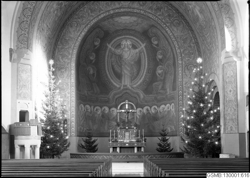 interiör; kyrka; altare; julgran