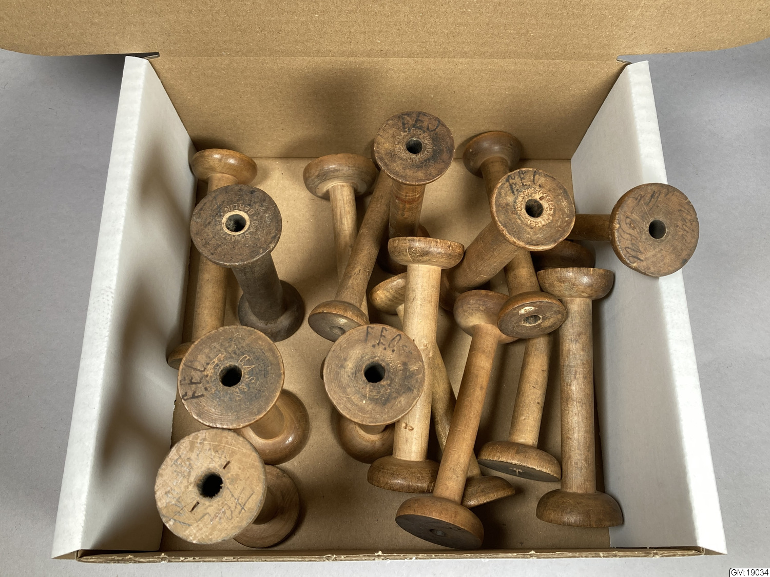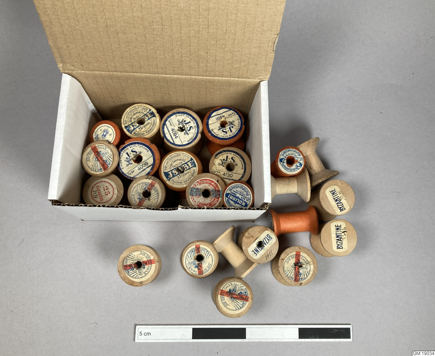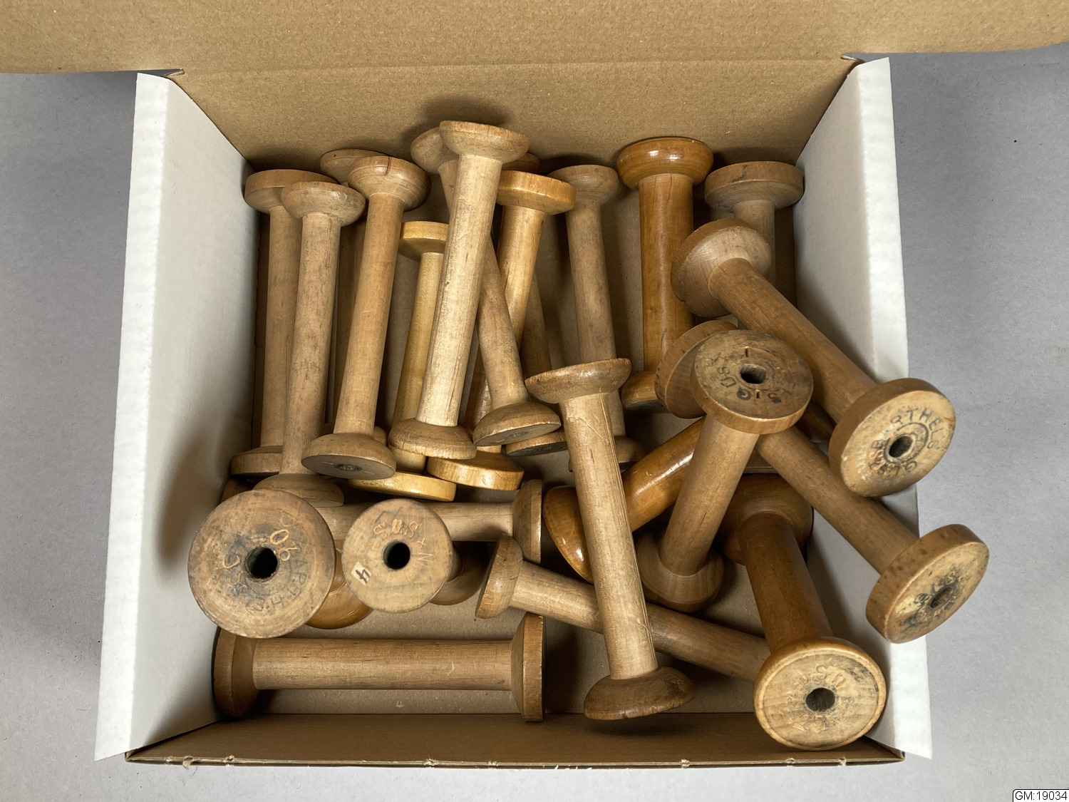 Många av spolarna omärkta eller oläsliga. importerade från Berlin: C. A. S & Son, C. A. Schnarnagel - som framgår av inristad inskription