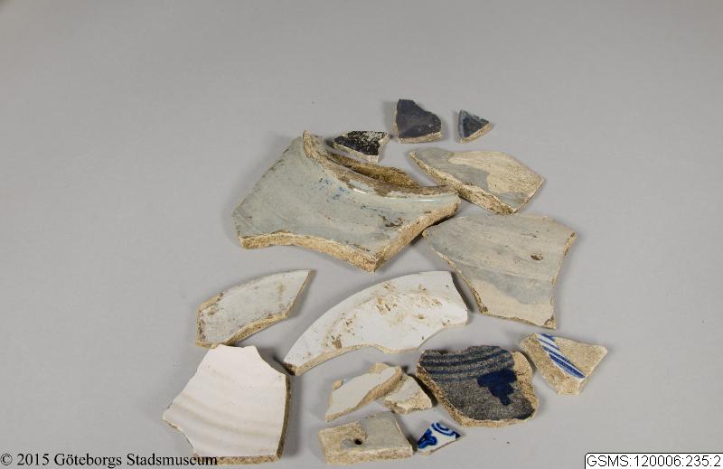 - dekor 2: minst två fat, invändigt geometriska mönster i blått orange och grönt