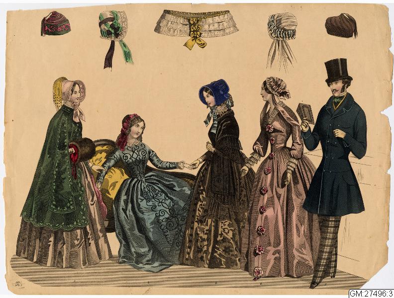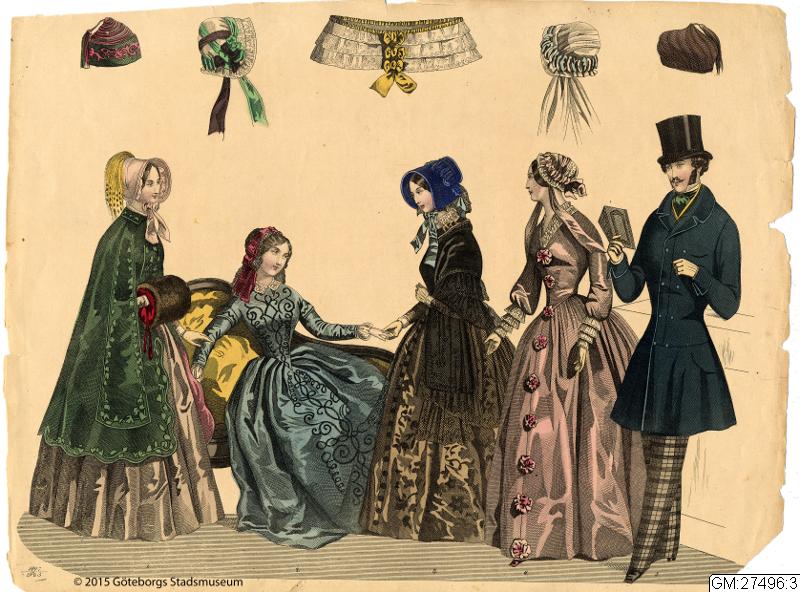 Modeplansch möjligen från "Stockholms Modejournal" - jämför stilen på planschen med de modeplanscher som hör till GM:27492