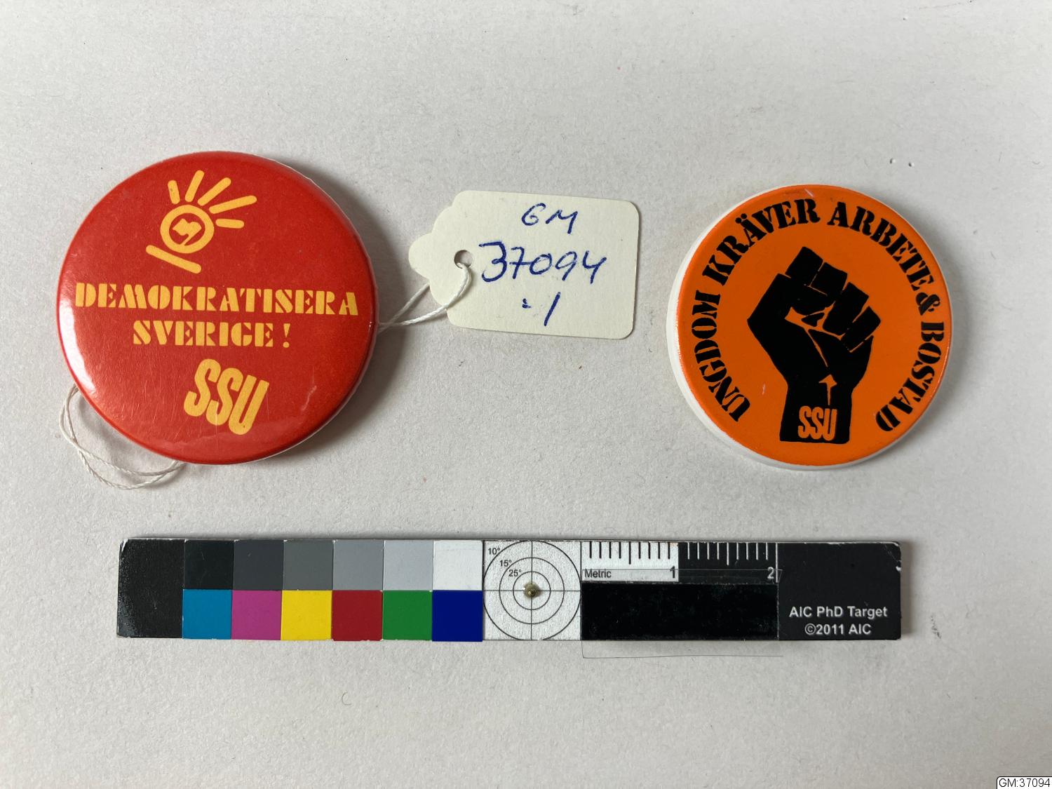 Två olika rockmärken för SSU "Sveriges Socialdemokratiska Ungdomsförbund"
